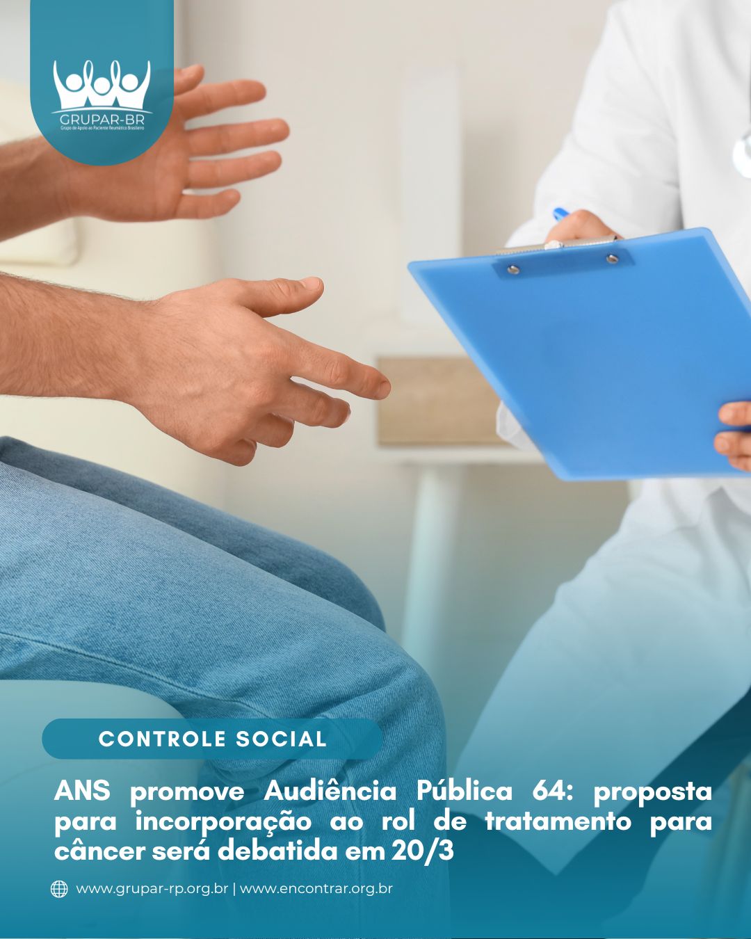 Agência Nacional de Saúde Suplementar (ANS) vai realizar, em 20/3, a Audiência Pública 64 para debater a proposta de incorporação ao Rol de Procedimentos e Eventos em Saúde da seguinte tecnologia: