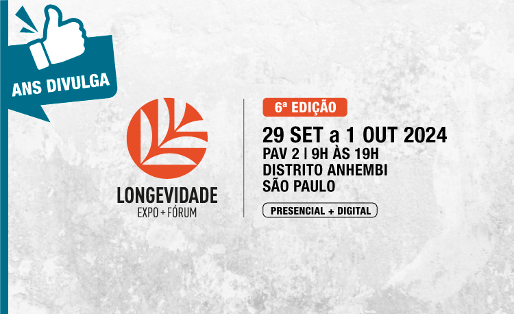 A Agência Nacional de Saúde Suplementar (ANS) marcará presença na 6ª edição da Longevidade Expo + Fórum, que acontecerá de 29 de setembro a 1º de outubro, em São Paulo. Durante o evento, será realizada a Conferência ANS, nos dias 29 e 30, das 9 às 17h, que terá debates sobre temas como prevenção de riscos e doenças e promoção do cuidado na saúde suplementar.