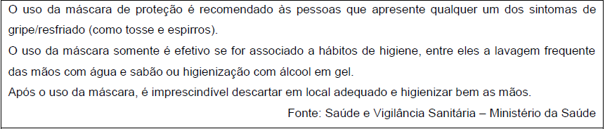 4. Colocar informes (em locais estratégicos – ex. entrada, guichê de triagem) solicitando que os pacientes/funcionários utilizem máscara de proteção, caso apresente qualquer um dos sintomas de gripe/resfriado (como tosse e espirros). Conforme exemplo abaixo:
