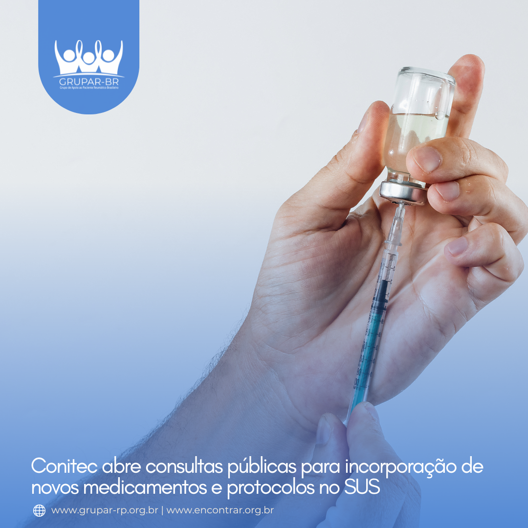 Estão abertas consultas públicas na Conitec para avaliação de protocolos clínicos e diretrizes terapêuticas e novas tecnologias para tratamento de diversas doenças. É muito importante a participação de toda a sociedade civil para que possamos conseguir ampliar o leque de opções terapêuticas para milhares de pacientes que dependem do sistema único de saúde.
