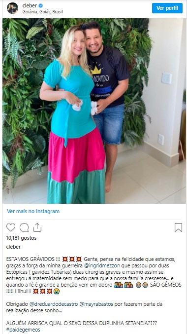 Recentemente o cantor Cleber, da Dupla Cleber e Cauan anunciou em suas redes sociais a gravidez de gêmeos da esposa Ingrid Mezzon. Por mais de 2 anos, o casal tentou engravidar naturalmente, tiveram uma gestação fora do útero (ectópica), sendo necessário uma cirurgia para tratar o problema. Seguiram para uma nova tentativa mas acabaram tendo um novo episódio de gestação ectópica (fora do útero), sendo necessária uma nova cirurgia. O ginecologista e especialista em reprodução humana, Eduardo de Castro (CRM 11384), explica que um dos principais fatores de risco para a ocorrência da gestação ectópica é a ocorrência de uma gravidez ectópica anterior.