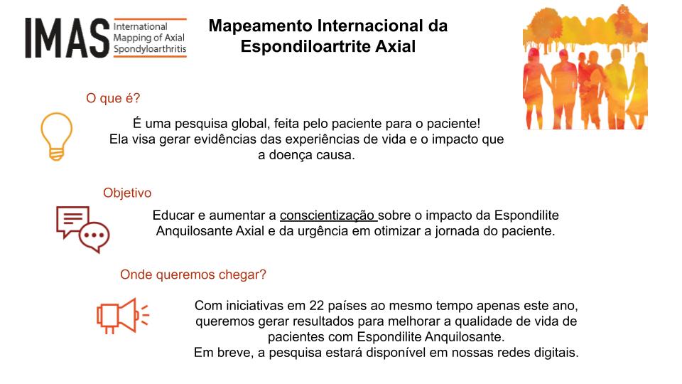 IMAS tem o objetivo de educar e aumentar a conscientização sobre o impacto da Espondilite Anquilosante Axial e da urgência em otimizar a jornada do paciente.
