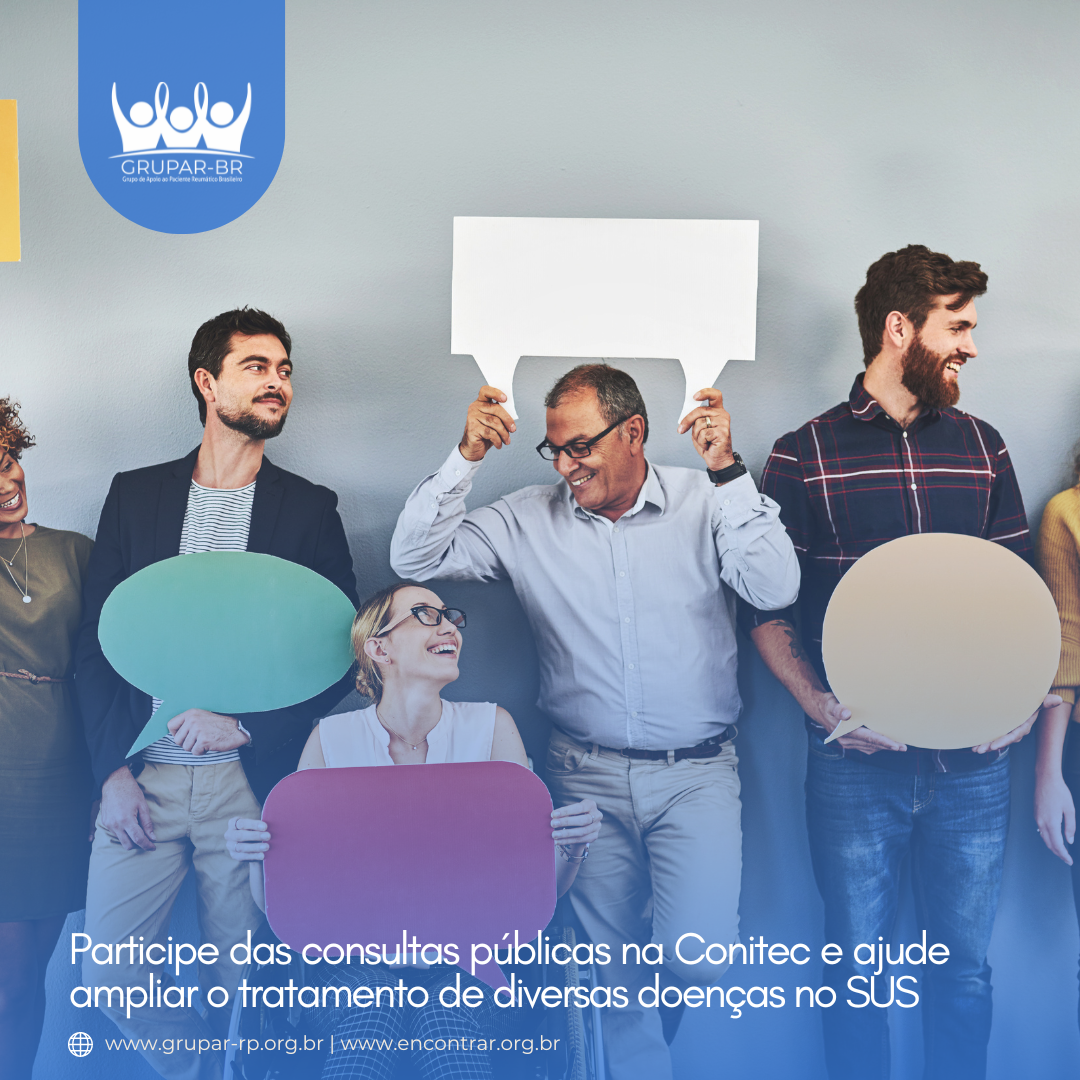 Estão abertas consultas públicas na Conitec para avaliação de protocolos clínicos e diretrizes terapêuticas e novas tecnologias para tratamento de diversas doenças. É muito importante a participação de toda a sociedade civil para que possamos conseguir ampliar o leque de opções terapêuticas para milhares de pacientes que dependem do sistema único de saúde.