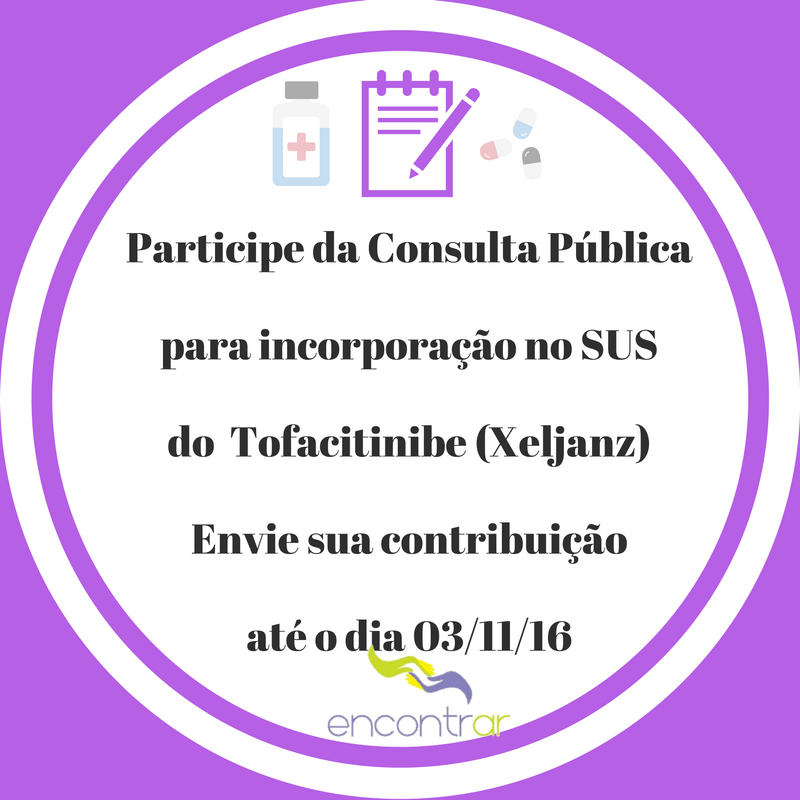 Consulta Pública tem por objetivo incorporar e fornecer no SUS o Tofacitinibe, um medicamento oral (comprimido), com efeito semelhante ao medicamento ...