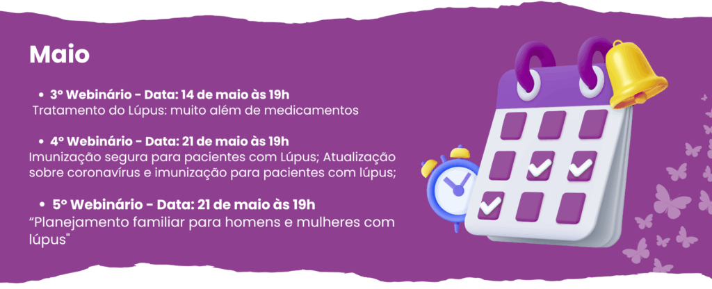 Os Webinários serão transmitidos ao vivo no Youtube todas às segundas-feiras, trazendo temas alusivos aos cuidados à vida do paciente com lúpus.